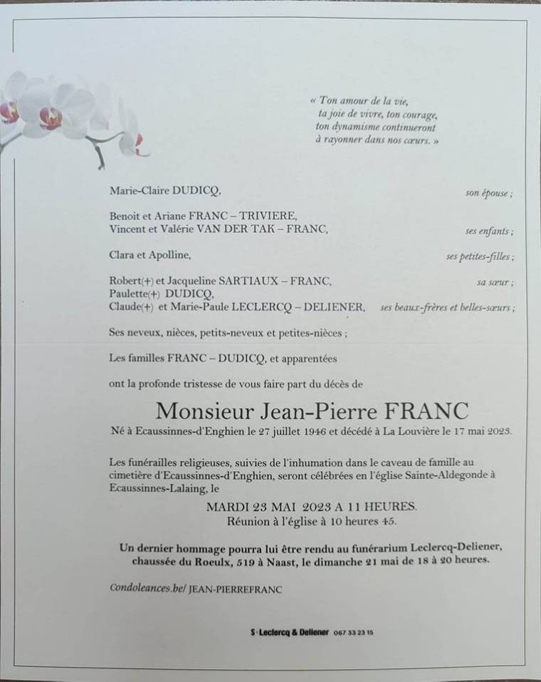 Nous apprenons ce jour le décès de notre ami Jean-Pierre Franc. Bien que toujours membre du Photoclub Brainois, Jean-Pierre nous avait rejoint en 2007.